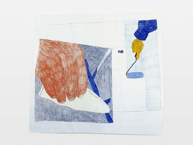 Spachteln und Telefonieren / 1997 / 73 x 90 cm / Coloured crayon on paper