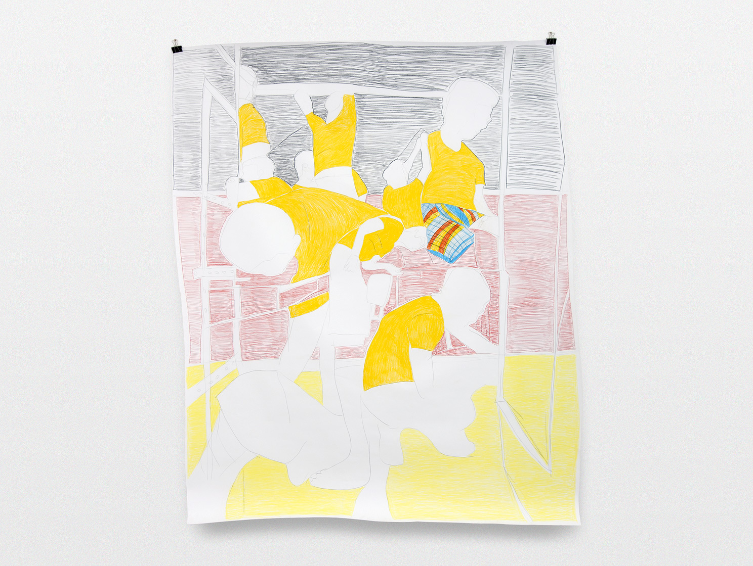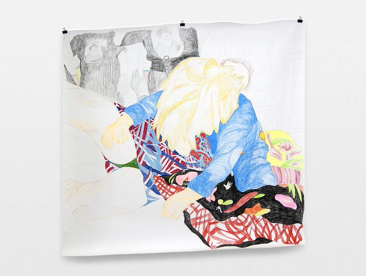 U.A. und S.S. / 2008 / 141 x 183 cm / Coloured crayon on paper, framed